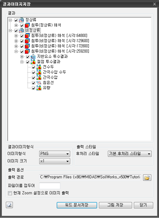 결과이미지 저장 Home > SoilWorks > 터널(Ground) > 결과 > 결과이미지 저장