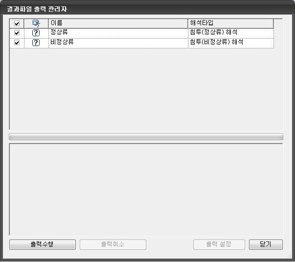 | 기능 | 해석완료된 결과를 텍스트 파일로 출력하는 기능입니다. |