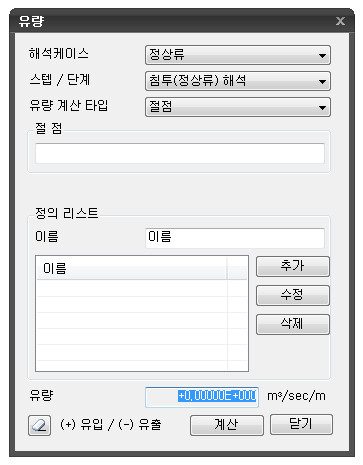 | 기능 | 침투해석 결과의 유량을 확인하는 기능입니다. |