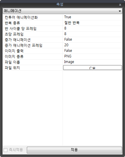 - 스텝 애니메이션 프레임 개수를 지정합니다.