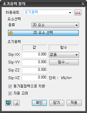 호출 메인메뉴 : 하중 & 경계요소 > 하중 > 초기응력하중