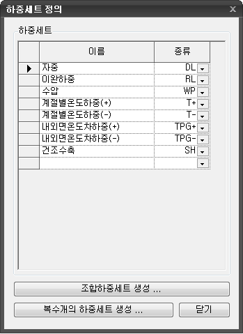 클릭하는 경우 복수개의 하중세트가 생성된 후 대화상자가 종료됩니다. -