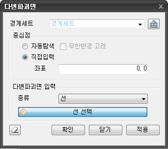 | 호출 | 메인메뉴 : 한계평형법 > 경계 > 다변파괴면 Command : PolygonalSurface"를 입력합니다 |