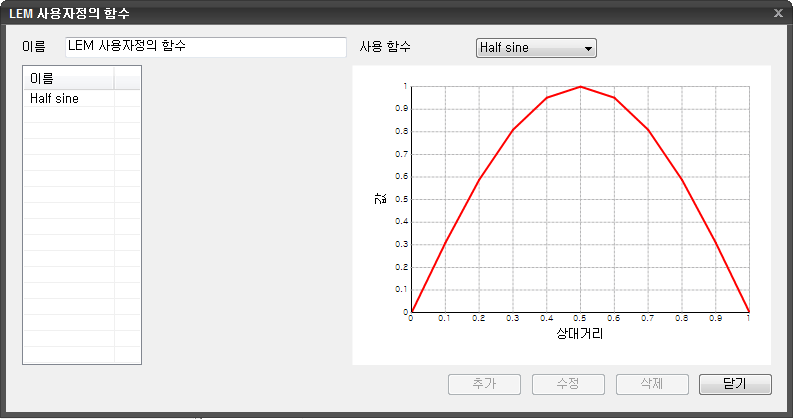 - Half Sine 은 별도의 입력 없이 기본 제공되며 , 사용자가 삭제할 수 없습니다 .