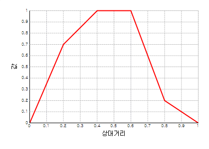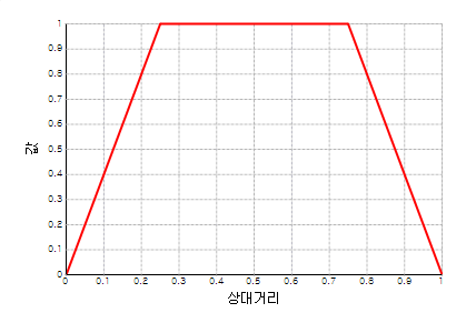 - Trapezoid 함수는 상대거리 0~1, 값 0~1 의 범위에서 사용자가 네개의 점을 직접 입력하여 정의하는 형태입니다 .