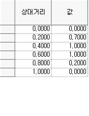 - User defined 함수는 상대거리0~1, 값 0~1의 범위에서 사용자가 임의 개수의 점을 직접 입력하여 정의하는 형태입니다.