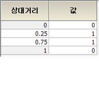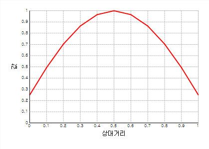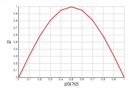 - Half Sine 함수는 상대거리 0~1, 값 0~1 의 범위에 대하여 반주기의 Sine 함수를 적용한 형태 입니다 .