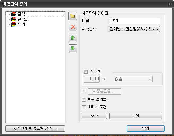 클릭하여 시공단계 해석모델 대화상자를 호출합니다.