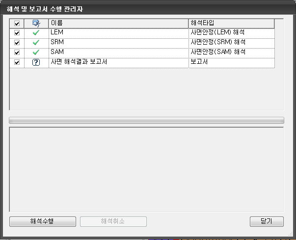 | 기능 | 해석수행과 보고서 생성을 동시에 진행합니다. |