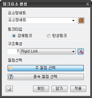 주 절점 선택 : 강체링크를 생성할 주절점을 지정합니다.