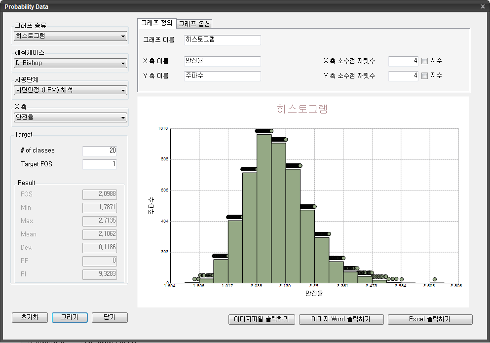 확률론결과 Home > SoilWorks > 사면(Slope) > 결과 > 통계결과 > 확률론결과