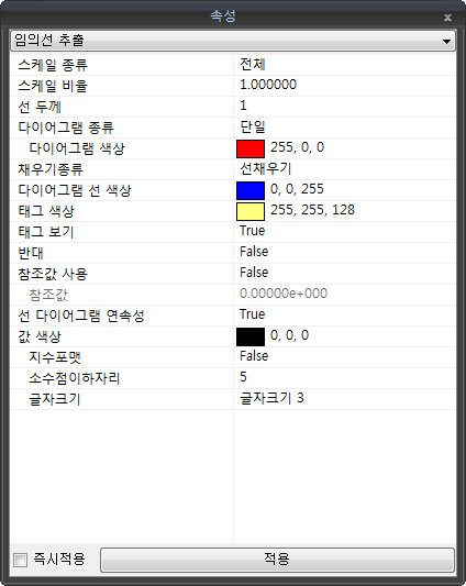 - 사용자가 정의한 임의 선 다이어그램의 최대/최소값을 기준으로 스케일이 조정됩니다.