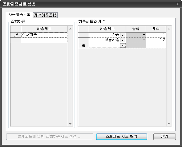 조합하중세트 생성(일반형식)