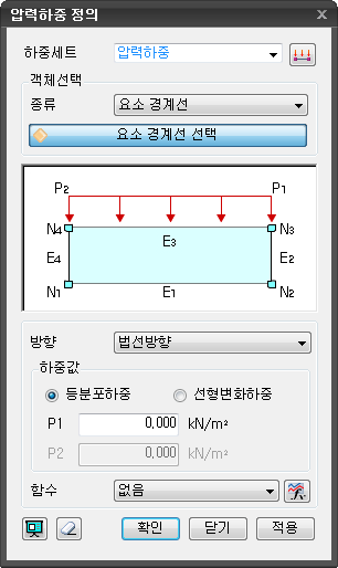 - 요소의 선상에 압력하중을 입력할 경우에 선택합니다.