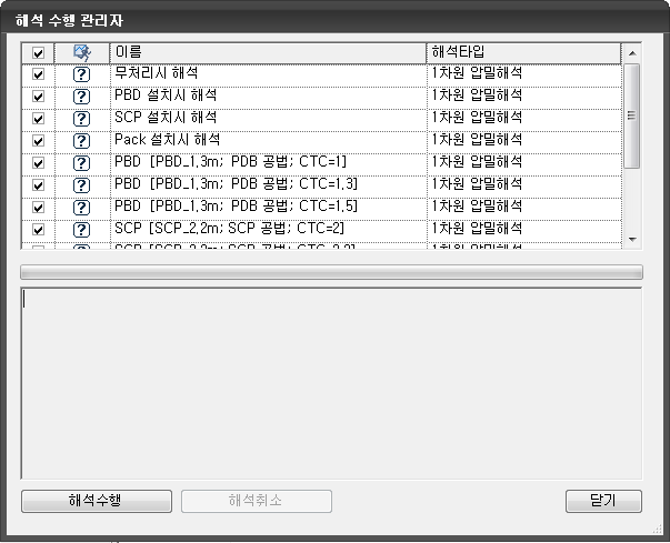 클릭하는 경우 선택한 해당 해석케이스의 해석이 수행됩니다. -