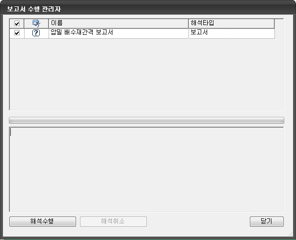 클릭하는 경우 선택한 수행중인 해당 해석케이스의 보고서 생성이 취소됩니다. -
