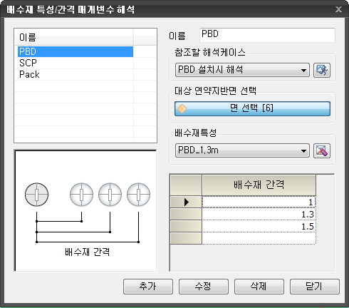 배수재 특성/간격 매개변수 해석