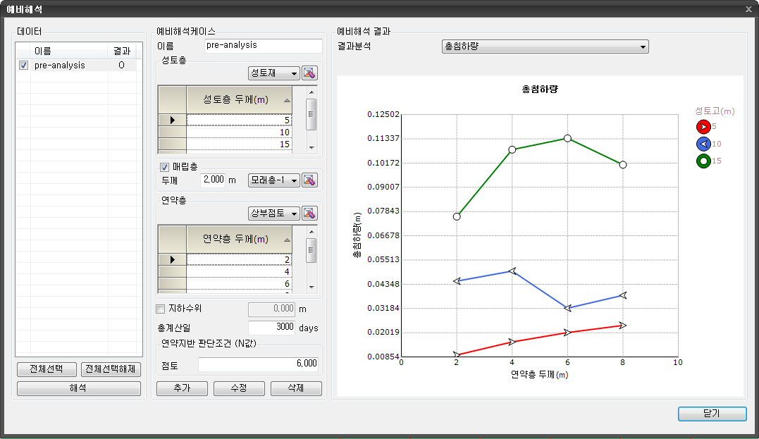예비해석 Home > SoilWorks > 연약지반(SoftGround) > 1차원 압밀 > 매개변수 해석 > 예비해석