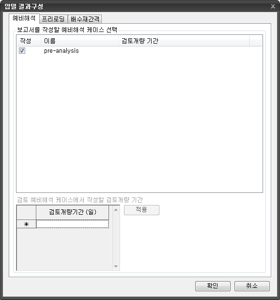 | 기능 | 예비해석 및 매개변수 해석결과 중 보고서출력에 대하여 설정합니다. |