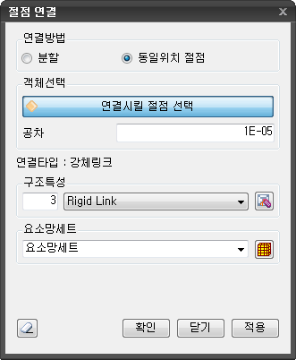 | 기능 | 공유되어 있는 절점의 연결을 끊거나 강체와 같은 링크요소를 생성할 수 있습니다. |