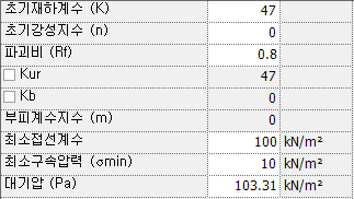 - 초기수평반력계수 : 견고한 점토의 초기수평반력계수를 입력합니다.