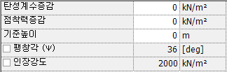 - 지반재료의 점착력을 입력합니다.
