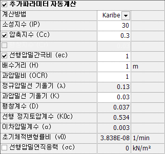 - \(K\) 자동계산 값 사용 (과압밀선 기울기 (\(K\)) 내용 참조)
