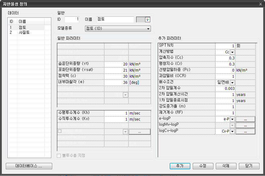 클릭하는 경우 새로운 지반물성이 추가됩니다. -