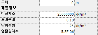 선택한 구조재료(콘크리트, 강재, 사용자정의 등)의 재질정보를 수정합니다.