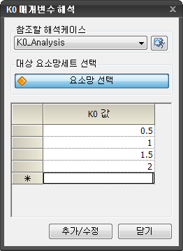 클릭하는 경우 새로운 K0 해석케이스가 추가되거나 변경됩니다. (이름 동일한 경우 변경, 다른경우 추가) -