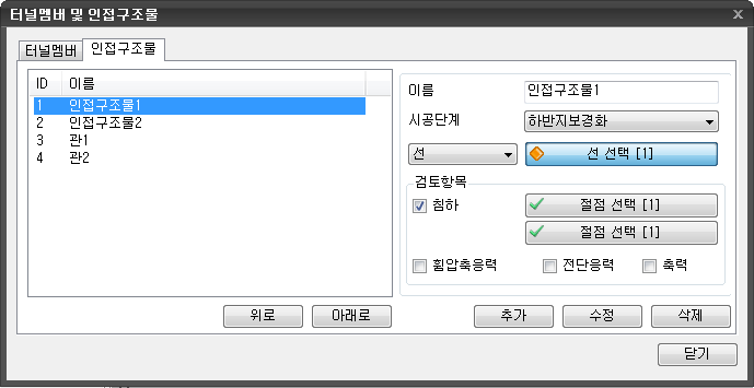 - 인접구조물의 이름을 입력합니다.