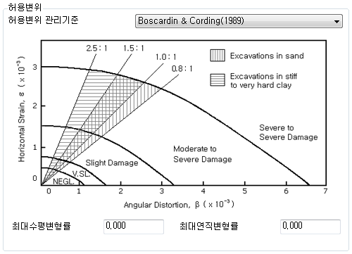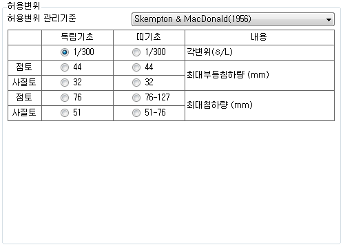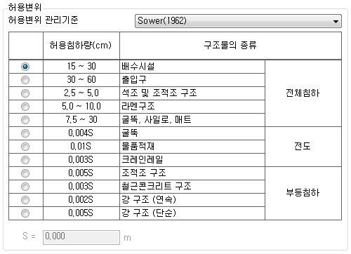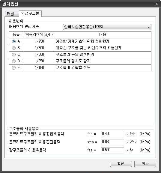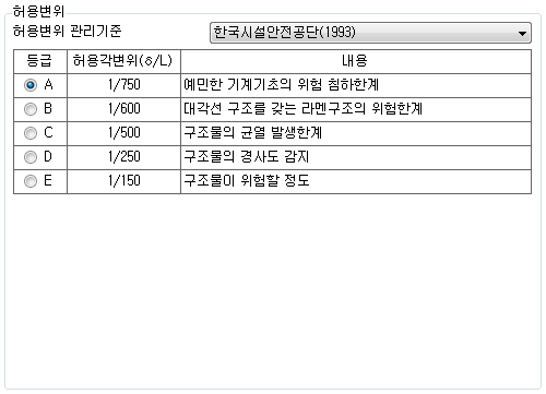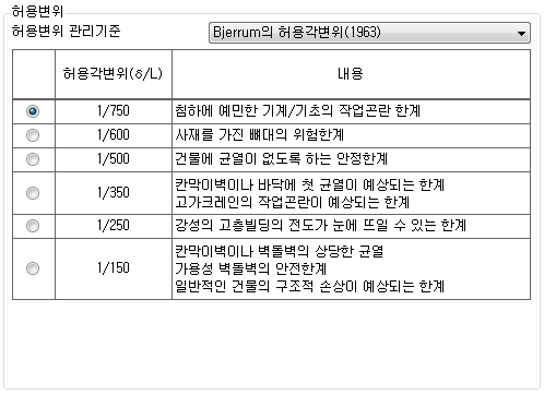 인접구조물 변위를 검토할 때 사용되는 기준을 선택합니다.