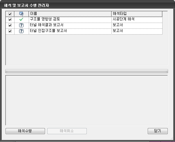 클릭하는 경우 선택한 해당 해석케이스의 해석이 수행됩니다. -