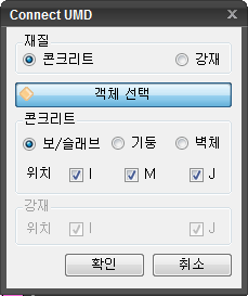 - 선택된 객체 구조특성의 재질은 본 대화창에서 선택한 재질과 일치해야 연동이 가능합니다.