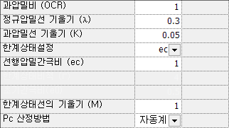 - \(K\) 자동계산 값 사용 (과압밀선 기울기 (\(K\)) 내용 참조)