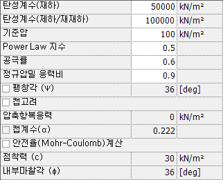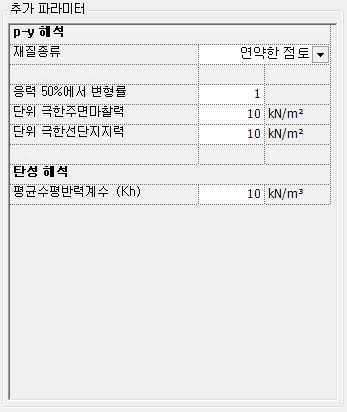 - 초기수평반력계수 : 견고한 점토의 초기수평반력계수를 입력합니다.