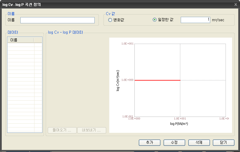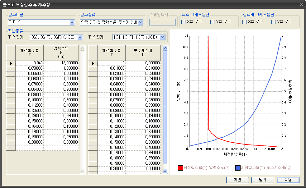 - 간극압에 따른 투수계수의 변화를 사용자가 직접 정의합니다.