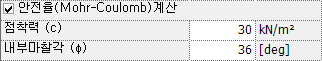 - 지반재료의 내부마찰각을 입력합니다.
