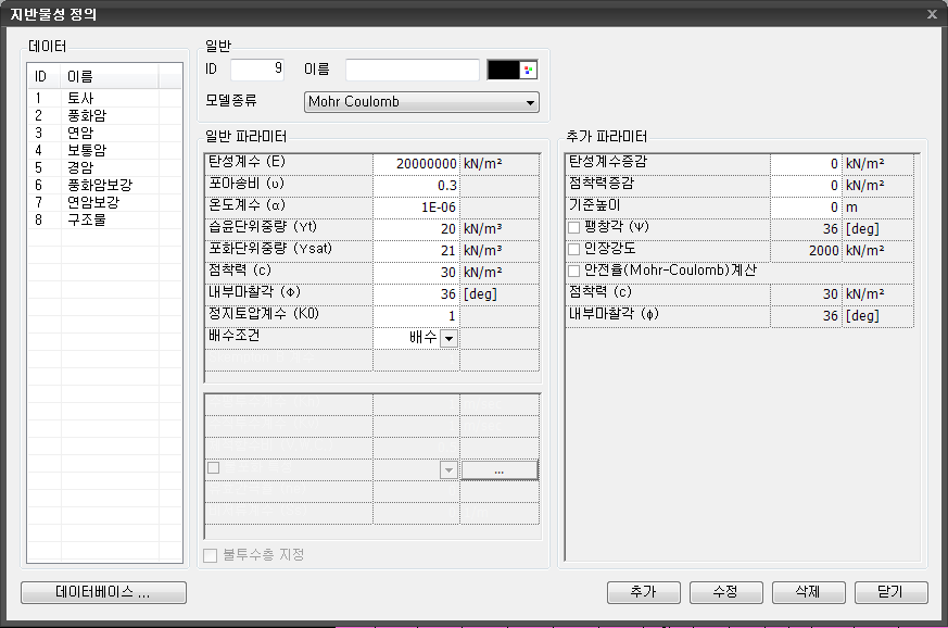 클릭하는 경우 새로운 지반물성이 추가됩니다. -