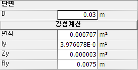 면적 : 요소의 단면적을 입력합니다.
