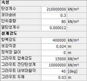 그라우트 두께 : 그라우트의 두께를 입력합니다.