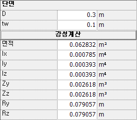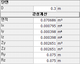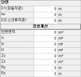 선택한 부재종류와 단면 형상에 따라서 치수를 입력합니다. 그림을 참고하여 치수를 입력하면 강성계산은 자동으로 실행되며 직접 입력해야하는 강성도 존재합니다.