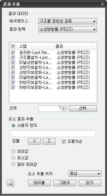 • 선택한 요소/절점을 X/Z 방향을 기준으로 ID를 정렬하여 결과를 추출합니다.