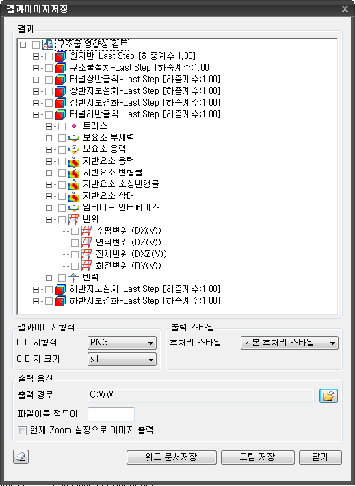 결과이미지 저장 Home > SoilWorks > 터널(Ground) > 결과 > 결과이미지 저장