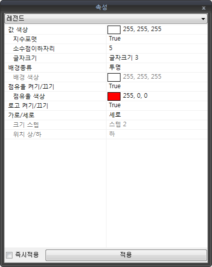 - 배경 색상에서 선택한 색상을 레전드 배경에 반투명하게 표시합니다.