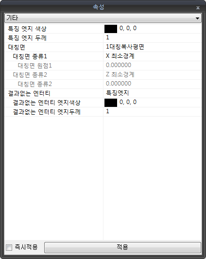 - '결과없는 엔터티'가 '특징엣지'와 '요소망엣지'일 경우 엣지의 색상을 지정합니다.