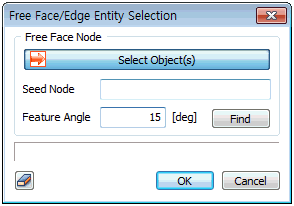 The applied displacement is defined on the node, but the selection target can also be set as a geometry shape (edge, surface etc.) or using auto-select free face nodes. For an edge or surface, the selected shape must have been used for element creation and the displacement is applied to all nodes in the specified direction/size. For free face nodes, select a free face node and all points that make contact with the node-containing element at an angle smaller than the specified angle (feature angle) are automatically selected.