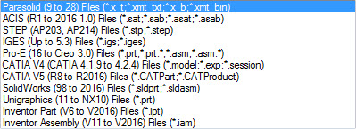 without limits. Parasolid (Parasolid(9 to 28) (*x_t;*.xmt_txt;*.x_b;*xmt_bin)