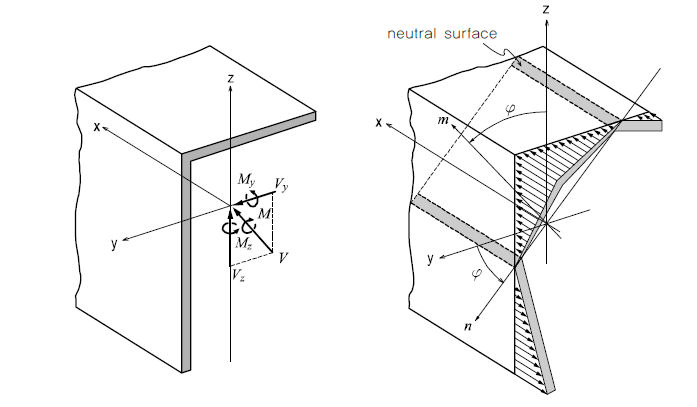 not have any angle of symmetry (Iyz≠ 0) and so, the stress