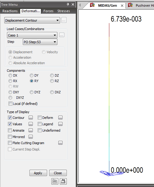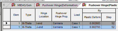Q1. Thanks for your immediate reply but it generates other doubts. I have attached another file where i go in Plastic field. Now the applied moment is 90 KN. The value of Load Case type ST is correct; it is exactly ML/EJ = 0.006529 > OK. But we don't understand the value 0.01172 for Load Case type PO. In fact, if this is the rotation of the node, how it is possible that it is less than the rotation of the hinge in J-end, which is 0.015129?